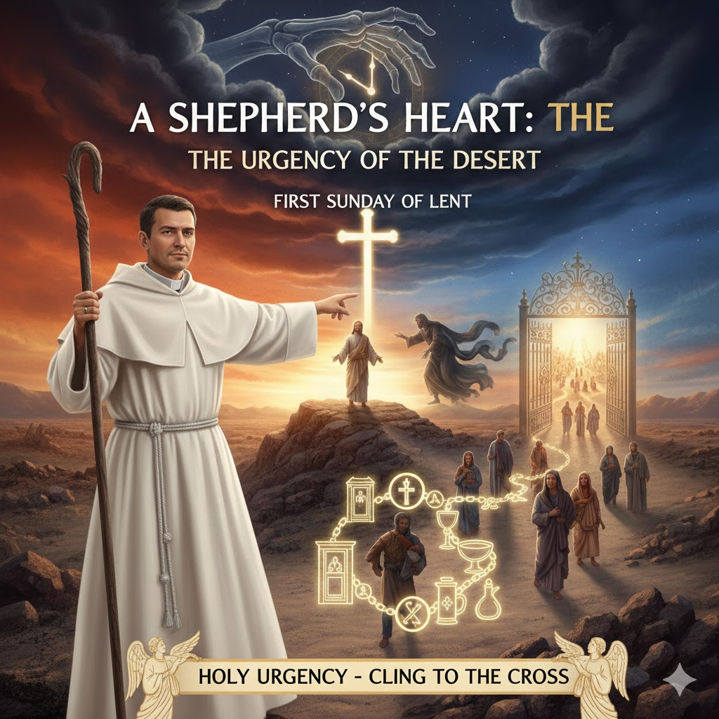 When we look at Matthew 4:1-11, we aren’t just reading a historical account of Jesus in the wilderness; we are looking at a roadmap for our own survival. As your Priest, I don’t talk about the “desert” or the discipline of Lent because I want to fill your calendar with more “church work.” I talk about it because I have stood at enough bedsides and seen enough of life’s fragility to know one absolute truth: Life is short, and eternity is forever. My deepest desire—the very reason I wear this collar—is to ensure that when your earthly pilgrimage ends, you are counted among the saints, reunited with your loved ones in the presence of God.