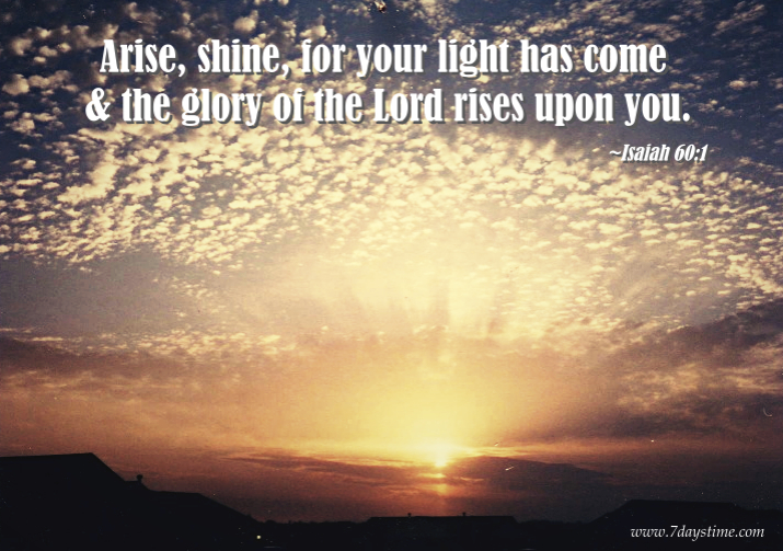“Arise, shine, for your light has come, and the glory of the Lord rises upon you! Isaiah 60:1