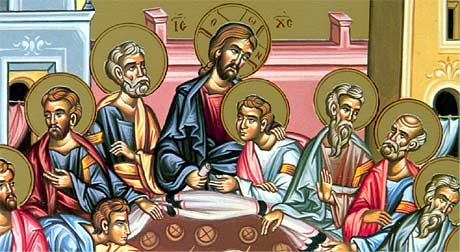 After washing their feet, the Lord celebrated the Paschal meal with the disciples, according the law of Moses. He then institutedthe new covenant Pascha- the Holy Mystery of the Holy Eucharist. The Gospel Writers tell us in Matthew 26:26-28; Mark 14:22-23; and Luke 22:19-20 that, while they were eating, Jesus took bread, gave thanks, and broke it, and gave it to his disciples, saying: ”take and eat, this is my body. Then he took the cup, gave thanks and offered it to them, saying ”drink from it all of you.This is my blood of the covenant which is poured out for many for the forgiveness of sins.”
