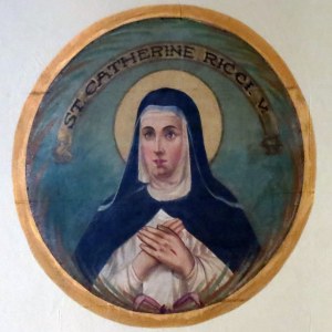 Sister Catherine was 20 when she began a 12-year cycle of weekly ecstasies of the Passion from noon each Thursday until 4:00 p.m. each Friday. The first time, during Lent 1542, she meditated so heart-rendingly on the crucifixion of Jesus that she became seriously ill, until a vision of the Risen Lord talking with Mary Magdalene restored her to health on Holy Saturday.