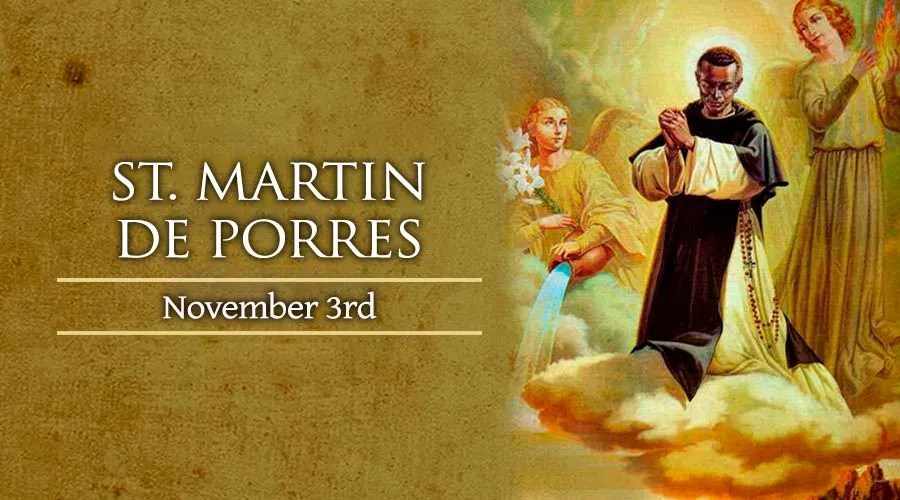 Blessed Martin de Porres was born in the city of Lima, in the Viceroyalty of Peru, on December 9, 1579, the illegitimate son of a Spanish nobleman and a black former slave. He grew up in poverty; when his mother could not support him and his sister, Martin was confided to a primary school for two years, and then placed with a barber/surgeon to learn the medical arts. This caused him great joy, though he was only ten years old, for he could exercise charity to his neighbor while earning his living. Already he was spending hours of the night in prayer, a practice that increased rather than diminished as he grew older.
