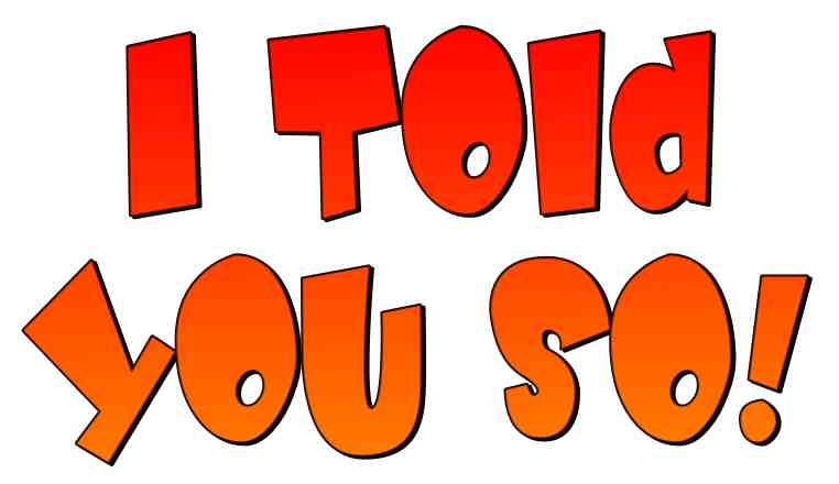 Do you remember when we were kids and our parents would tell us to not do that thing because if we did, we would cause all manner of problems AND get into trouble? And because we were us, we went right ahead and did that thing and we caused all manner of problems and got into trouble. And our parents said, “I told you so.”