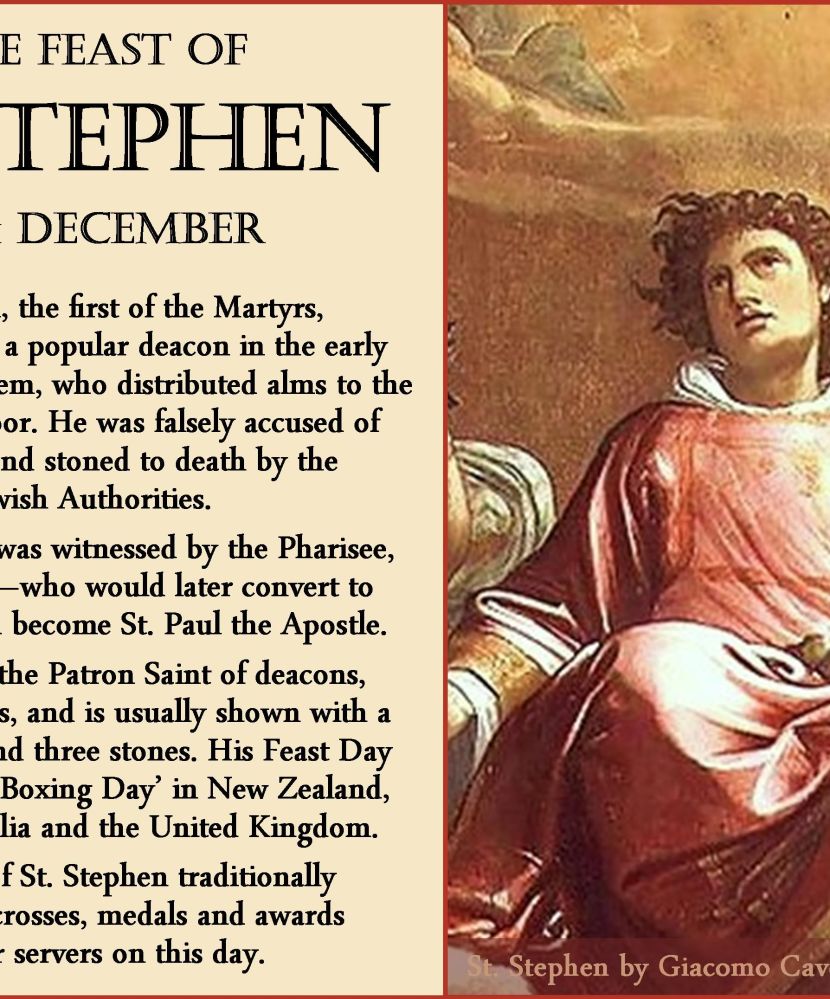 Today, the day after we have celebrated the joyous birth of Our Lord and Saviour, and after all the enjoyment of festive food and the giving of gifts which we traditionally do at Christmas, and with this being the first time many of us have been able to have any joyous type of occasion this year amid all the covid19 pandemic situation, we now come in total contrast to that of the celebrations of Christmas day, to the Feast of St. Stephen who was the first Martyr to die for his faith in Our Lord.