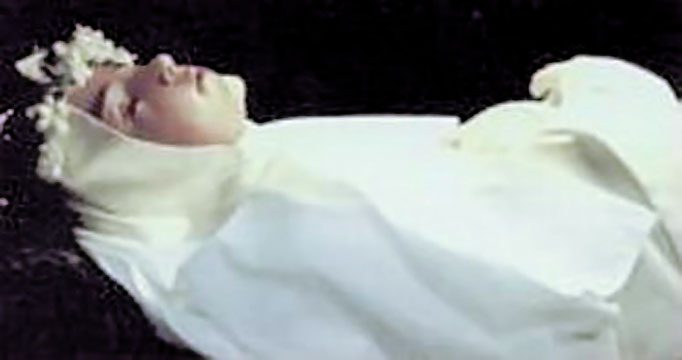 After Mass, Imelda remained in her place in the choir. The sacristan busied herself putting out candles and removing the Mass vestments. A sound caused her to turn and look into the choir, and she saw a brilliant light shining above Imelda’s head, and a Host suspended in the light. The sacristan hurried to get the chaplain.