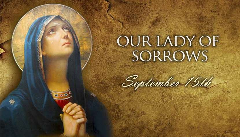 In 1668 the feast in honor of the Seven Dolors was set for the Sunday after September 14, the Feast of the Holy Cross. The feast was inserted into the Roman calendar in 1814, and Pope Pius X fixed the permanent date of September 15 for the Feast of the Seven Sorrows of the Blessed Virgin Mary (now simply called the Feast of Our Lady of Sorrows). The key image here is our Blessed Mother standing faithfully at the foot of the cross with her dying Son: the Gospel of St. John recorded, “Seeing His mother there with the disciple whom He loved, Jesus said to His mother, ‘Woman, there is your son.’ In turn He said to the disciple, ‘There is your mother.’” (John 19:26-27). The Second Vatican Council in its Dogmatic Constitution on the Church wrote, “…She stood in keeping with the divine plan, suffering grievously with her only-begotten Son. There she united herself, with a maternal heart, to His sacrifice, and lovingly consented to the immolation of this Victim which she herself had brought forth” (#58).