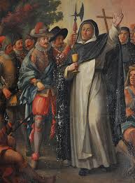 Unknown to his brethren, St. Louis had long cherished the desire to enter the mission fields of the New World. The hope that there he might find the coveted crown of martyrdom contributed not a little to sharpening the edge of his desire. Possessed of the necessary permission he sailed for America in 1562, and landed at Cartagena, where he immediately entered upon the career of a missionary. The work thus begun was certainly fruitful to an extraordinary degree, and bore unmistakably the stamp of Divine approbation. The process of his canonization bears convincing testimony to the wonderful conquest which the saint achieved in this new field of labor. The Bull of canonization asserts that, to facilitate the work of converting the natives to God, the apostle was miraculously endowed with the gift of tongues. From Cartagena, the scene of his first labors, St. Louis was sent to Panama, where in a comparatively short time he converted some 6,000 Indians. His next mission was at Tubera, situated near the sea-coast and midway between the city of Cartagena and the Magdalena River. The success of his efforts at this place is witnessed by the entries of the baptismal registers, in the saint’s own handwriting. These entries show that all the inhabitants of the place were received into the Church by St. Louis. Turon places the number of converts in Tubera at 10,000. What greatly enhances the merit of this wonderful achievement is that all had been adequately instructed in the teachings of the Church before receiving baptism, and continued steadfast in their faith.
