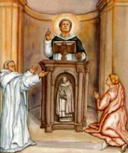 Emily was born in 1238, the fourth of seven daughters. Before her birth, her mother was privileged to see in a dream something of the future work of her daughter. She saw a magnificent church-one that she had never seen before-and a beautiful young girl wearing white robes and a veil with a wreath of white roses. Around the young woman gathered other girls, all dressed in the same fashion, and, as the good woman watched, enthralled by the beauty of the scene, they formed into a procession and marched singing around the church. An old Dominican to whom she related the dream explained to her it concerned the child she was bearing, and that this child, a daughter, would be a saint.
