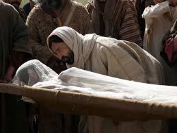 And so it was in Nain, where Jesus revives another widow’s son. In this Gospel story, Jesus approaches the dead man on his own volition. No one asked him to, no one accused him of causing the death of the young man. But he has pity on her and gives her back her son.